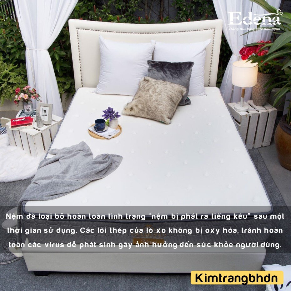 ?? Nệm lò xo của Edena đã loại bỏ hoàn toàn tình trạng “nệm bị phát ra tiếng kêu” sau một thời gian sử dụng. Các lõi thép của lò xo không bị oxy hóa, tránh hoàn toàn các virus dễ phát sinh gây ảnh hưởng đến sức khỏe người dùng.