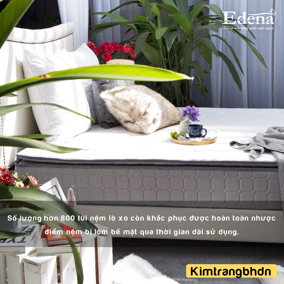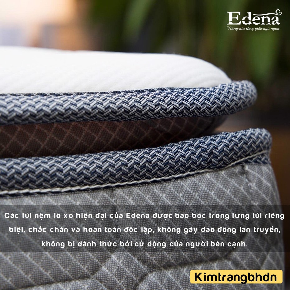 ?? Các túi nệm lò xo hiện đại của Edena được bao bọc trong từng túi riêng biệt, chắc chắn và hoàn toàn độc lập, không gây dao động lan truyền, không bị đánh thức bởi cử động của người bên cạnh.