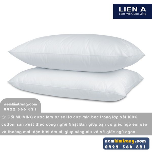 ?? Gối MLIVING được làm từ sợi tơ cực mịn bọc trong lớp vải 100% cotton, sản xuất theo công nghệ Nhật Bản giúp bạn có giấc ngủ êm sâu và thoáng mát, đặc biệt êm ái, giúp nâng niu vỗ về giấc ngủ ngon.