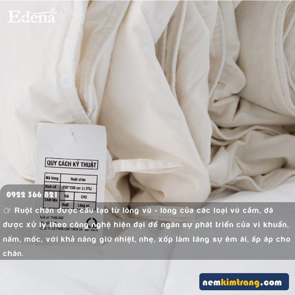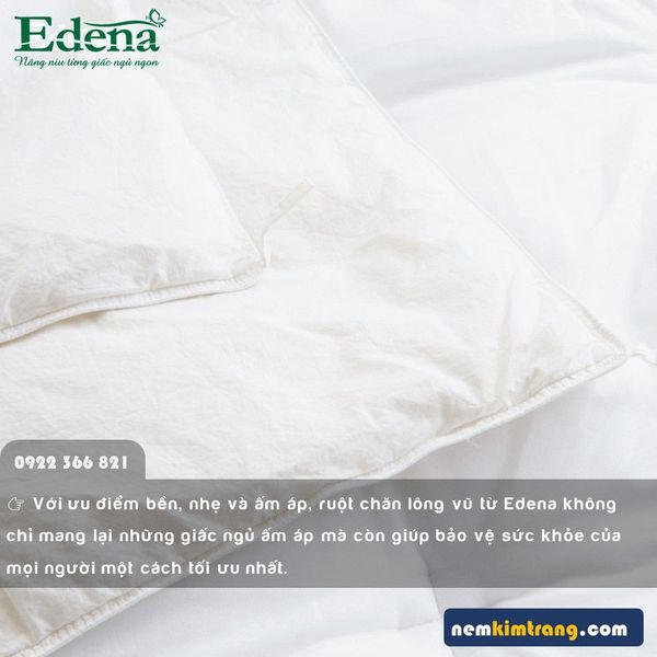 👉 Với ưu điểm bền, nhẹ và ấm áp, ruột chăn lông vũ từ Edena không chỉ mang lại những giấc ngủ ấm áp mà còn giúp bảo vệ sức khỏe của mọi người một cách tối ưu nhất.